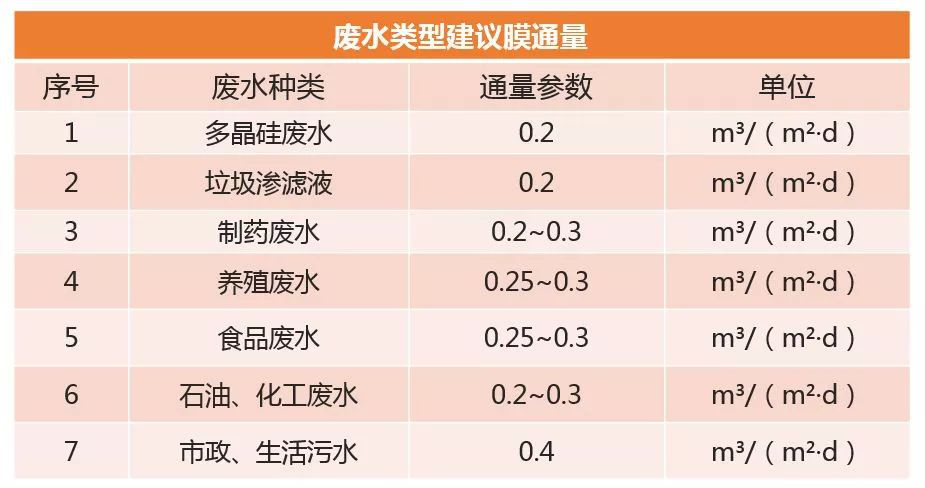 膜通量是MBR的一个重要运行参数。膜通量又称膜的透水量,指在正常工作条件下,通过单位膜面积的产水量,单位是m3/( m2˙h)或m3/(m2.d)。