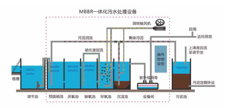 本项目采用“生物接触氧化+浸没式超滤”工艺,以生物膜法去除COD及氮磷,以浸没式超滤去除悬浮物,使污水得以净化。生物膜法耐冲击负荷,运行稳定,净化效率高,污泥产量少;浸没式超滤过滤精度高,通量大,节能高能,能够保证出水水质。该工艺操作简单、运营费用低、出水水质稳定达标、污泥产量少、能够有效确保污水达标排放。
